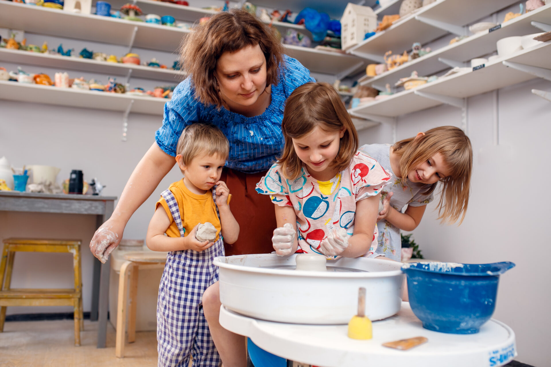 Стать участником творческого, увлекательного процесса, создать собственный уникальный шедевр, научиться работать на гончарном круге можно, став участником мастер-класса «Гончарный круг». Мы предлагаем занятия гончарного дела для разных возрастов – куда могут прийти как дети от 4, 5, 7 лет, так и взрослые. Каждый мастер-класс — это возможность устроить необычное романтическое свидание, оригинальную дружескую вечеринку, весело провести день рождения или познавательный, креативный семейный выходной на 3-5 человек. Программы, которые предлагает мастерская, могут быть адаптированы под любое событие.